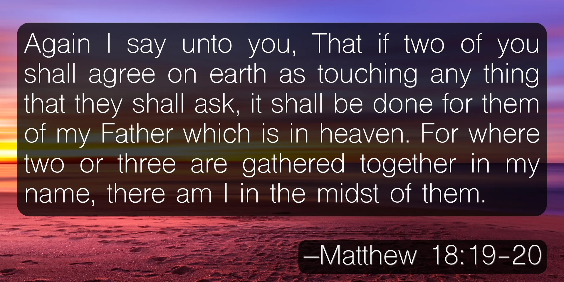 Again I say unto you, That if two of you shall agree on earth as touching any thing that they shall ask, it shall be done for them of my Father which is in heaven. For where two or three are gathered together in my name, there am I in the midst of them. –Matthew 18:19-20
