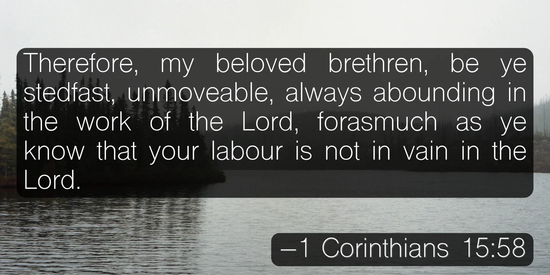 Therefore, my beloved brethren, be ye stedfast, unmoveable, always abounding in the work of the Lord, forasmuch as ye know that your labour is not in vain in the Lord. –1 Corinthians 15:58